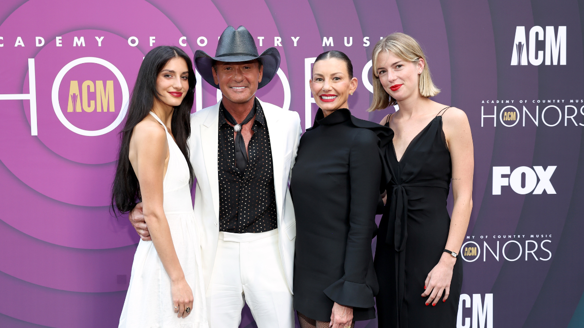 Tim McGraw beamed as he arrived at the 16th annual ACM Honors on Wednesday evening (August 23), accompanied by three of the most important people in his life: his wife and fellow country superstar, Faith Hill, and daughters Maggie McGraw, 25, and Audrey McGraw, 21. The family arrived together at the historic Ryman Auditorium in Downtown Nashville, Tennessee.